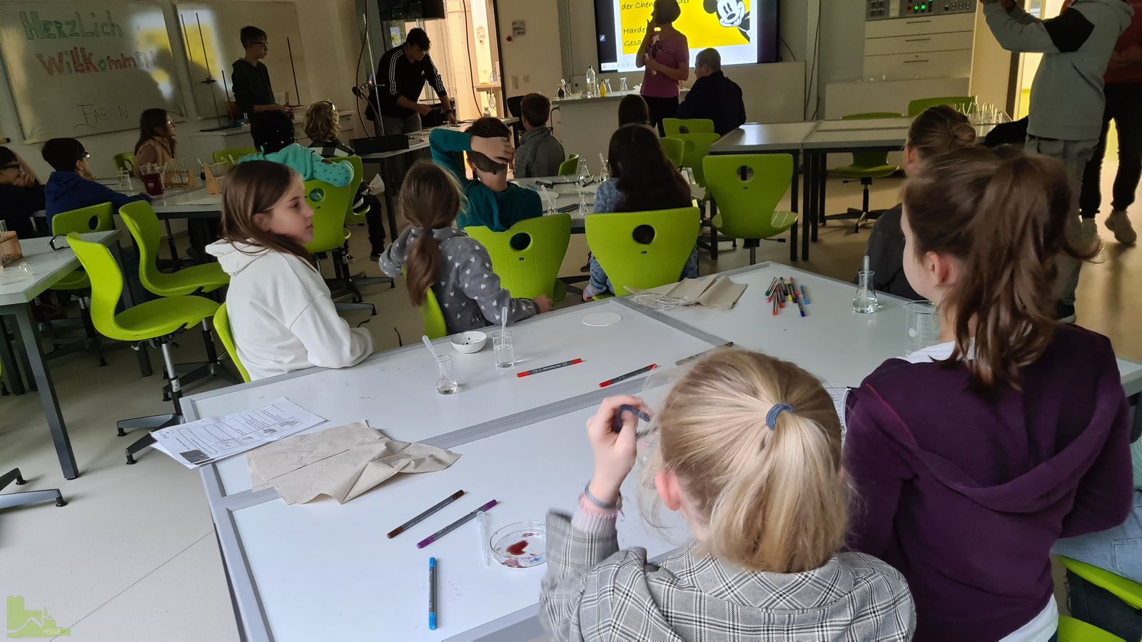 Nachdem im letzten Jahr bereits Kinder der umliegenden Grundschulen die Hardenstein-Gesamtschule besucht hatten und völlig begeistert waren, durfte nun erneut geforscht werden: am 23. und 24. 10. besuchten einige Wittener Grundschulen den NW-Trakt der Hardenstein, um gemeinsam mit Schüler:innen der Jahrgangsstufen 8 und 10 Phänomene aus den Naturwissenschaften kindgerecht aufbereitet zu untersuchen. Zu Gast waren die Grundschulen Herbede, Vormholz, Buchholz und die Dorfschule Heven sowie die Sprockhöveler Grundschule Bögersbruch. Im Lichtlabor waren die begeisterten Viertklässler:innen den Lichtstrahlen auf der Spur, beim Mikroskopieren durften sie dann Bernstein untersuchen und konnten in den Steinen eingeschlossene Tiere genauer betrachtet, auf den Spuren der Vergangenheit befanden sich die Kinder im Biologie-Raum, in dem sie etwa 70.000 Jahre alte Fossilien ausgraben durften und die Fachschaft Chemie hatte sich dieses Jahr etwas ganz Besonderes ausgedacht: warum Silvester-Raketen so schön sind, wurde den Grundschulkindern unter strenger Aufsicht von Arian und Joshua aus der 10c gezeigt. Am Ende eines ereignisreichen Tages verließen die Grundschulkinder die Hardenstein und freuen sich auf ihren nächsten Besuch!
